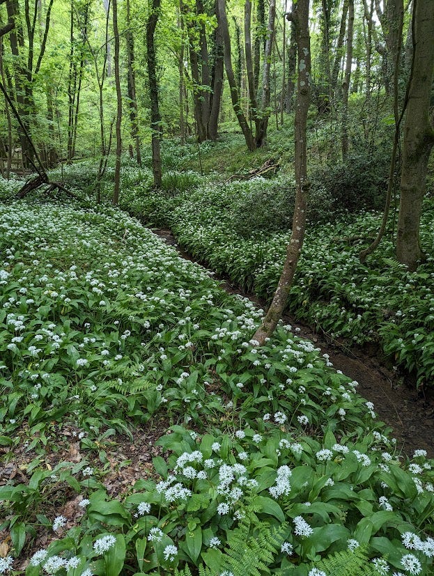 At the moment the mulberry tree will still be bare in the churchyard, blackbirds will be singing, snowdrops and primroses will be out, and the wild garlic will be shooting up in the woodland that surrounds the church. Ideally my funeral would be in early May though, the month Laurie Lee called “the flower-studded crown of spring”, when the ramsons have flowered and the bluebells are out and the air is both garlic-pungent and sweetly perfumed at once.